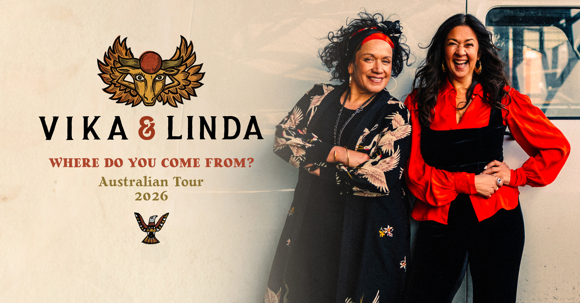 Vika & Linda are two of Australia’s most celebrated and enduring voices. They have captivated Australian audiences for over 35 years with their powerful harmonies and magnetic stage presence. From their Tongan roots singing in church to global tours with The Black Sorrows, the sisters have released nine studio albums, topped charts, written an autobiography, and collaborated with legends like Paul Kelly and Kasey Chambers. Inducted into the Music Victoria Hall of Fame and awarded the OAM for their service to music, Vika &Linda are revered for their genre-spanning versatility and soul-stirring performances. With enduring influence and boundless energy, they remain one of Australia’s most treasured and trail blazing vocal duos