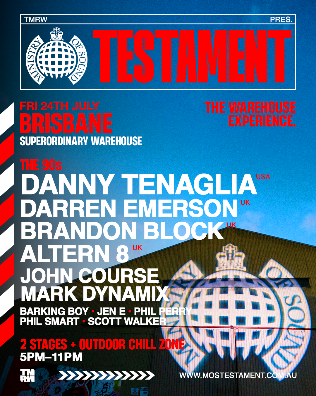 Ministry of Sound Testament is back in July 2026 with our most highly-anticipated tour to date. The warehouse experience is primed to return to one of our favourite dancefloors, Superordinary Warehouse for our Testament to 00s club culture.