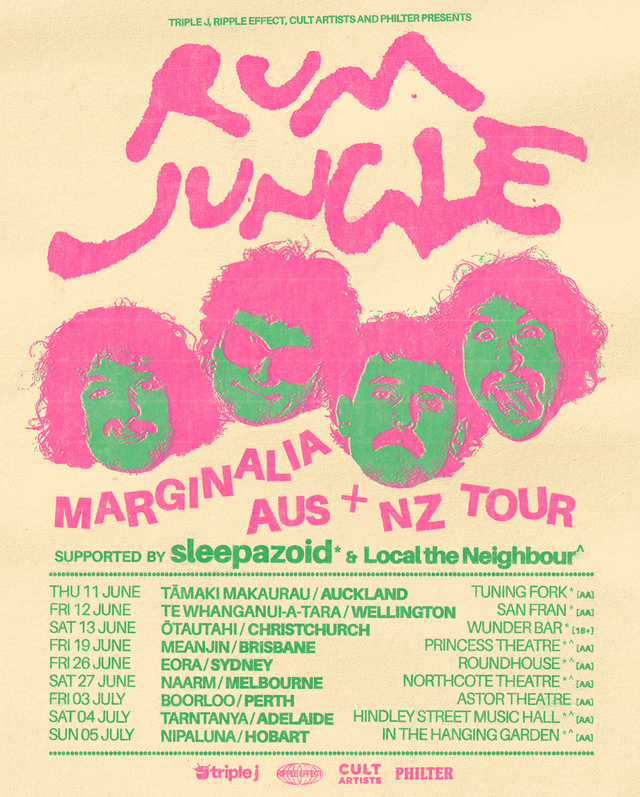 Renowned for their electric live shows, Rum Jungle’s performances blur the line between indie rock urgency and sing-along pop instinct, the kind of gig where the room moves as one. With momentum building internationally and a new chapter of music underway, these shows mark the band’s biggest headline run across Australia and New Zealand to date.