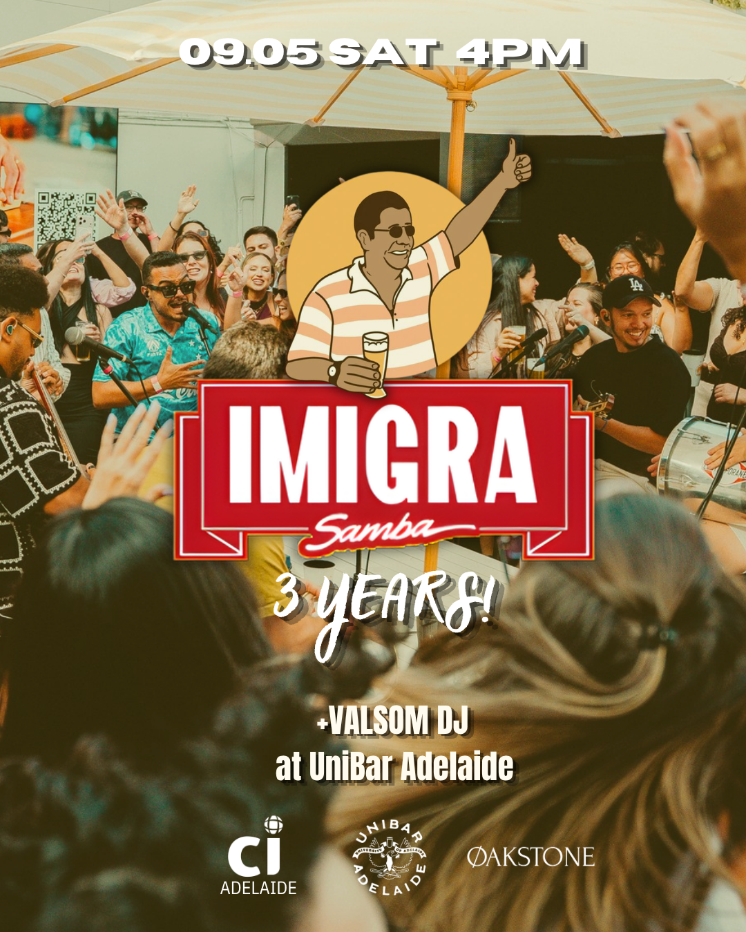 Celebrating 3 years of Imigrasamba bringing the energy of Brazilian samba and culture to Adelaide.