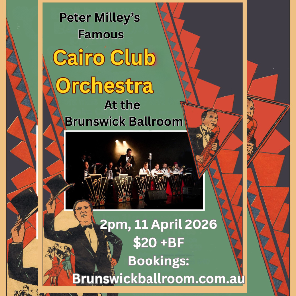 Step back into the roaring heart of the Jazz Age with the Cairo Club Orchestra, Melbourne’s premier vintage dance band. Specialising in music from the 1920s and 1930s, this spirited ensemble is devoted to recreating music from history’s dust bin—reviving rare and forgotten gems from the golden era of jazz and swing.